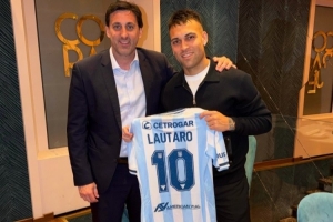 米利托今天造访国米训练基地,照片中,劳塔罗手持印有自己名字的阿根廷10号球衣,他为照片配文:“见到你真高兴,@米利托!”
