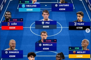 中场:莱奥(6500万欧、米兰)、巴雷拉(5000万欧、国米)、帕斯(6500万欧、科莫)、伊尔迪兹(7500万欧、尤文)