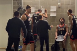 季后赛前上上强度!险胜勇士后 火箭在更衣室外加练 KD申京入镜