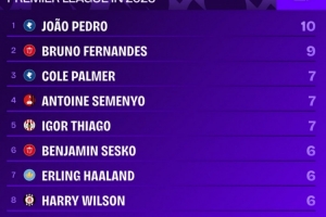 体育资讯3月5日讯 Squawka统计了2026年球员在英超的参与进球数量,并列出榜单,若昂·佩德罗参与10球居首,B费参与9球次席。